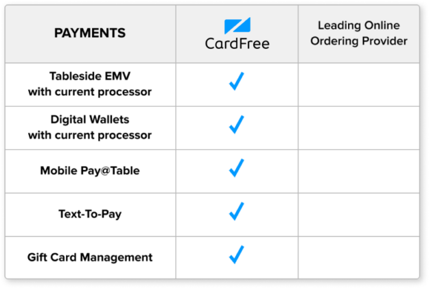 CardFree Vs The Leading Online Ordering Provider